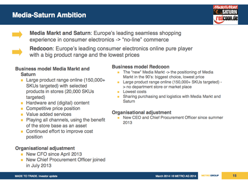 Redcoon soll demnach der „neue Media Markt“ werden und wie Media Markt in den 90er Jahren die größte Auswahl zum niedrigsten Preis bieten. Ein Ausbau zum Marktplatz ist nicht (mehr) geplant.