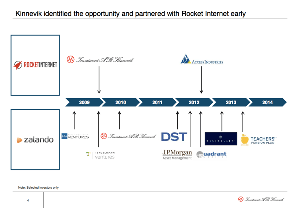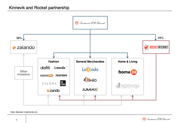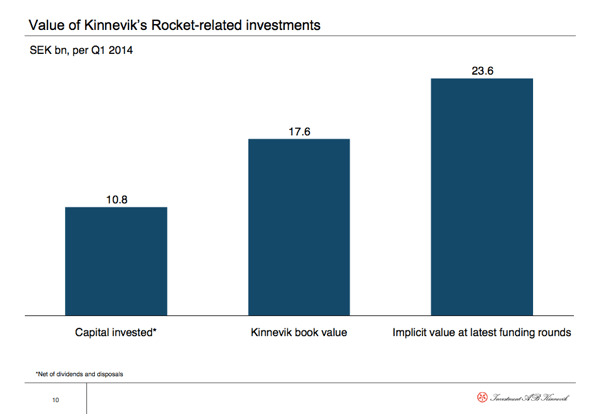 Insgesamt 10,8 Mrd. SEK (rund 1,2 Mrd. Euro) hat Kinnevik bisher in Rocket Internet und seine E-Commerce-Unternehmungen investiert, anteilsmäßig umgelegt alleine 7,9 Mrd. SEK (rund 870 Mio. Euro) in Zalando.