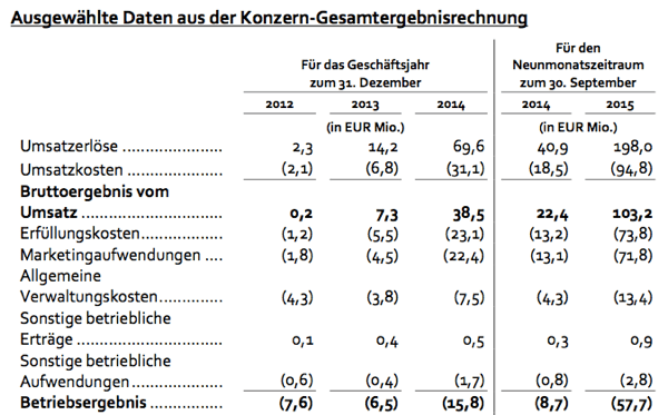 Moment mal, Fulfilment Kosten sind doch wohl Stückkosten. Insbesondere solange man keine große eigene Flotte o.ä. hat. Damit wäre der Rohertrag nicht bei 52% 2015 ytd, sondern bei 15%. Ganz egal wie viel Marketing sie heute machen – Wenn die Ramp-up Phase vorbei ist und man bedenkt, dass das Geschäftsmodell langfristig immer noch zu großen Teilen auf Marketing beruht, muss das Marketing auch von den 15% bezahlt werden, bevor das Modell überhaupt Profit machen kann. Vielleicht kann man die Fulfilment-Kosten senken durch Skaleneffekte, aber sicher nicht drastisch. Umsatzkosten zu senken wird kaum klappen, außer bei Qualitätseinbußen. Damit ist das Geschäftsmodell mit 15-20% Rohmarge doch intrinsisch nicht attraktiv, den Hype verstehe ich nicht.