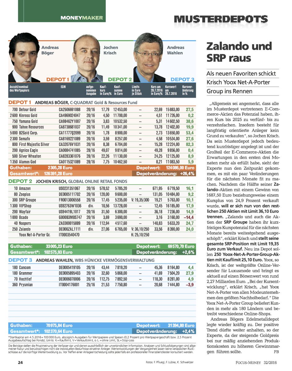 Im Unterschied zum GLORE-Fonds („Zalando treibt den GLORE25 wieder über die 100er-Marke“), der die komplette Branche abbilden soll und deshalb in der Zusammensetzung stabil ist, wird das Musterdepot sehr viel aktiver verwaltet. Hier der Stand nach den ersten drei Monaten: