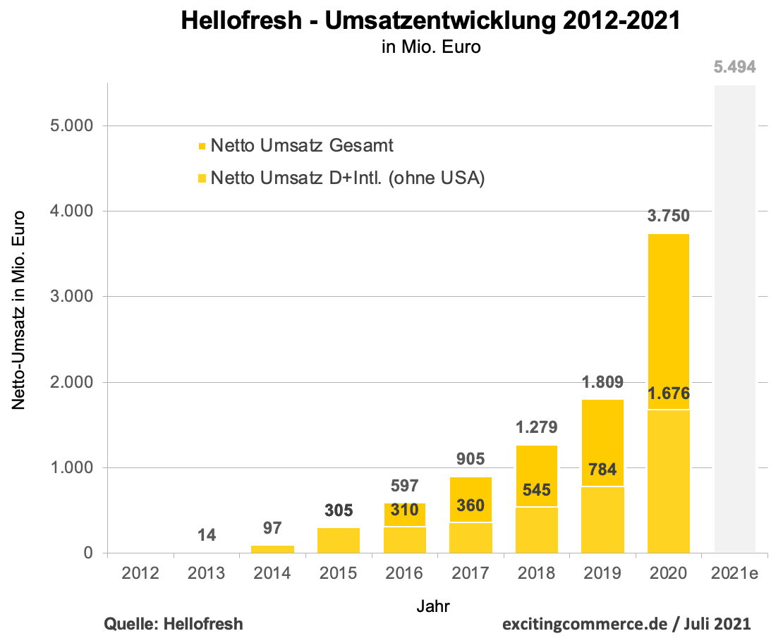 - HelloFresh rechnet jetzt bereits mit Umsätzen von 5,5 Mrd. €