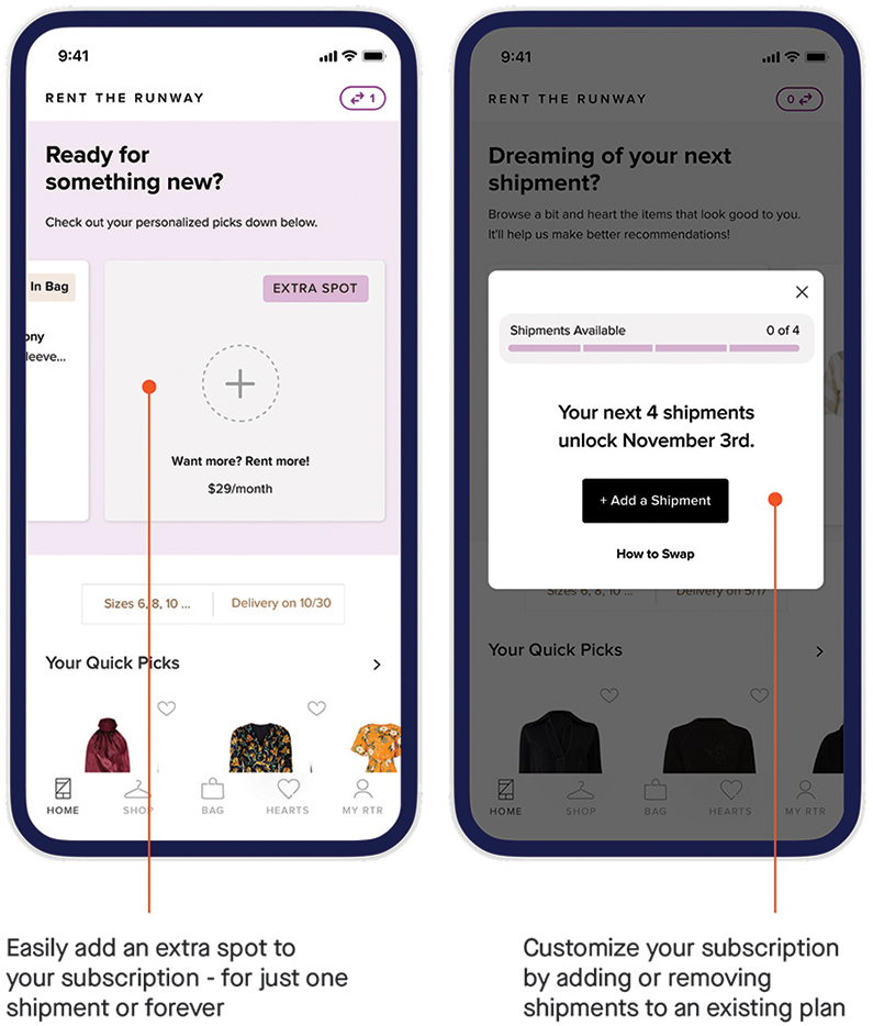 Spannend sind dabei die Zusatzoptionen, mit denen Rent the Runway dann entsprechend kreativ spielen kann, um zusätzliche Einnahmen zu generieren: