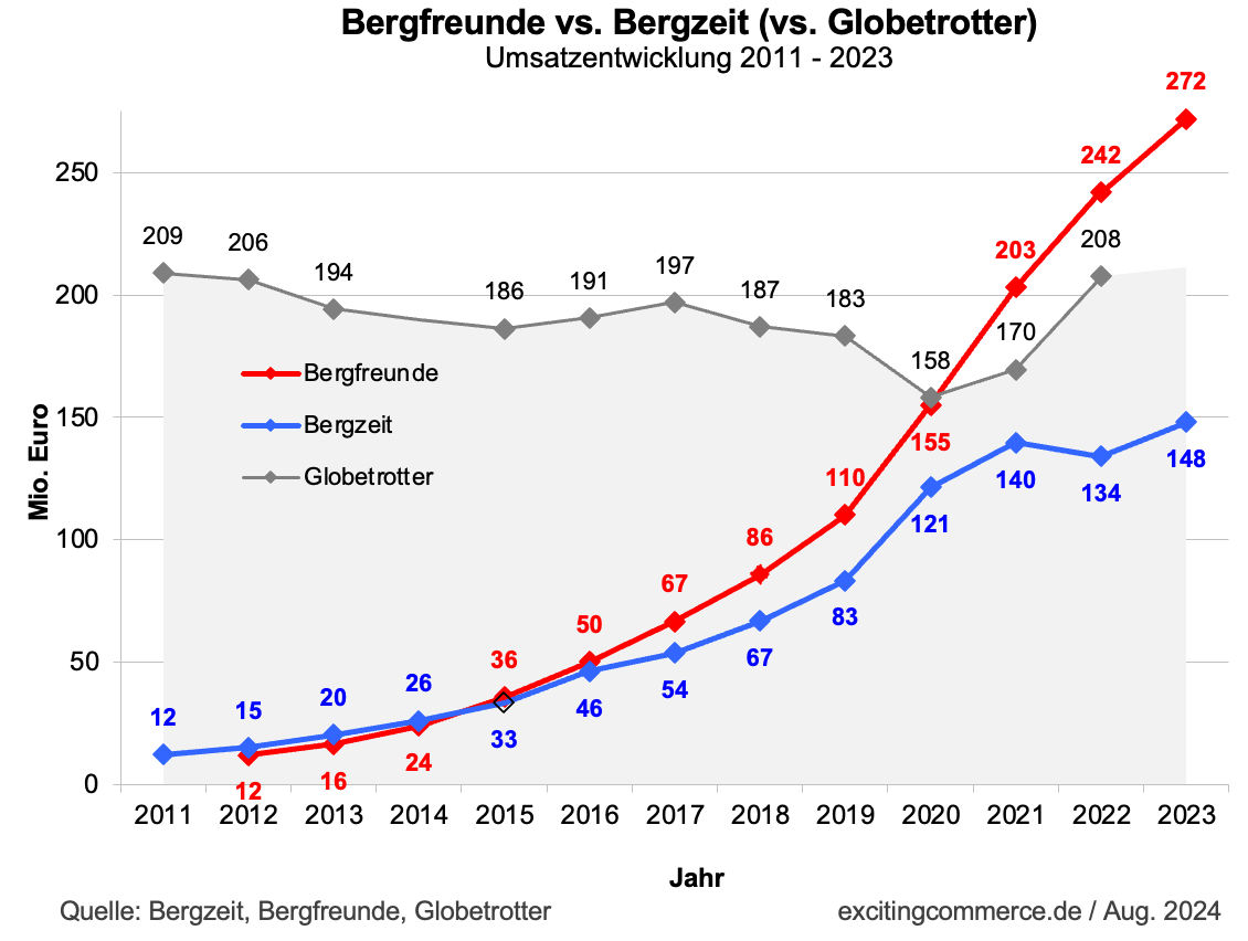 Bergzeit und Bergfreunde bewegen sich inzwischen auf sehr unterschiedlichen Niveaus (siehe Alltricks und Bergfreunde kommen erstmals auf 500 Mio. €).